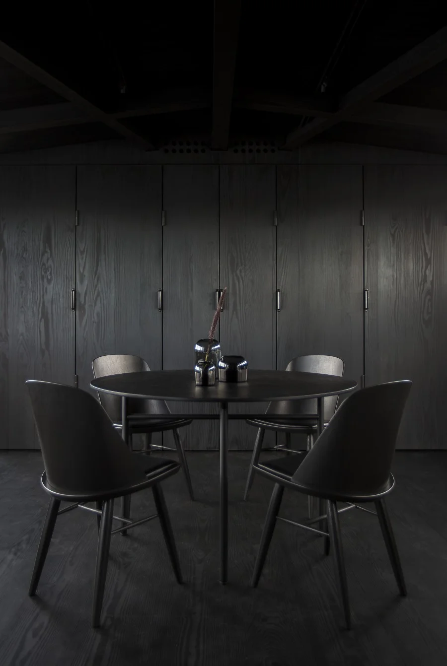 Inside, the black interior not only reflects its previous role with coal, it intensifies the arresting views outside. At the same time, black has a remarkably calming effect. Jonas Bjerre-Poulsen, Design Manager at MENU, curated the MENU furnishings for the interior. As he sees it, “People intuitively feel relaxed by natural, monochromatic tones. But the project involved more than finding black products in our portfolio.