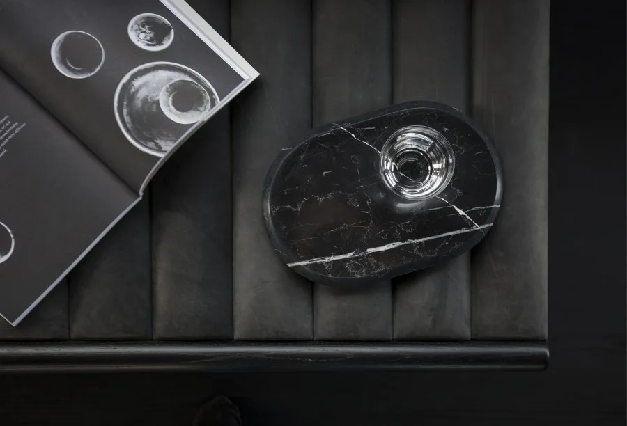 It involved selecting products with innate nuances of black, such as the marble plinth side tables.