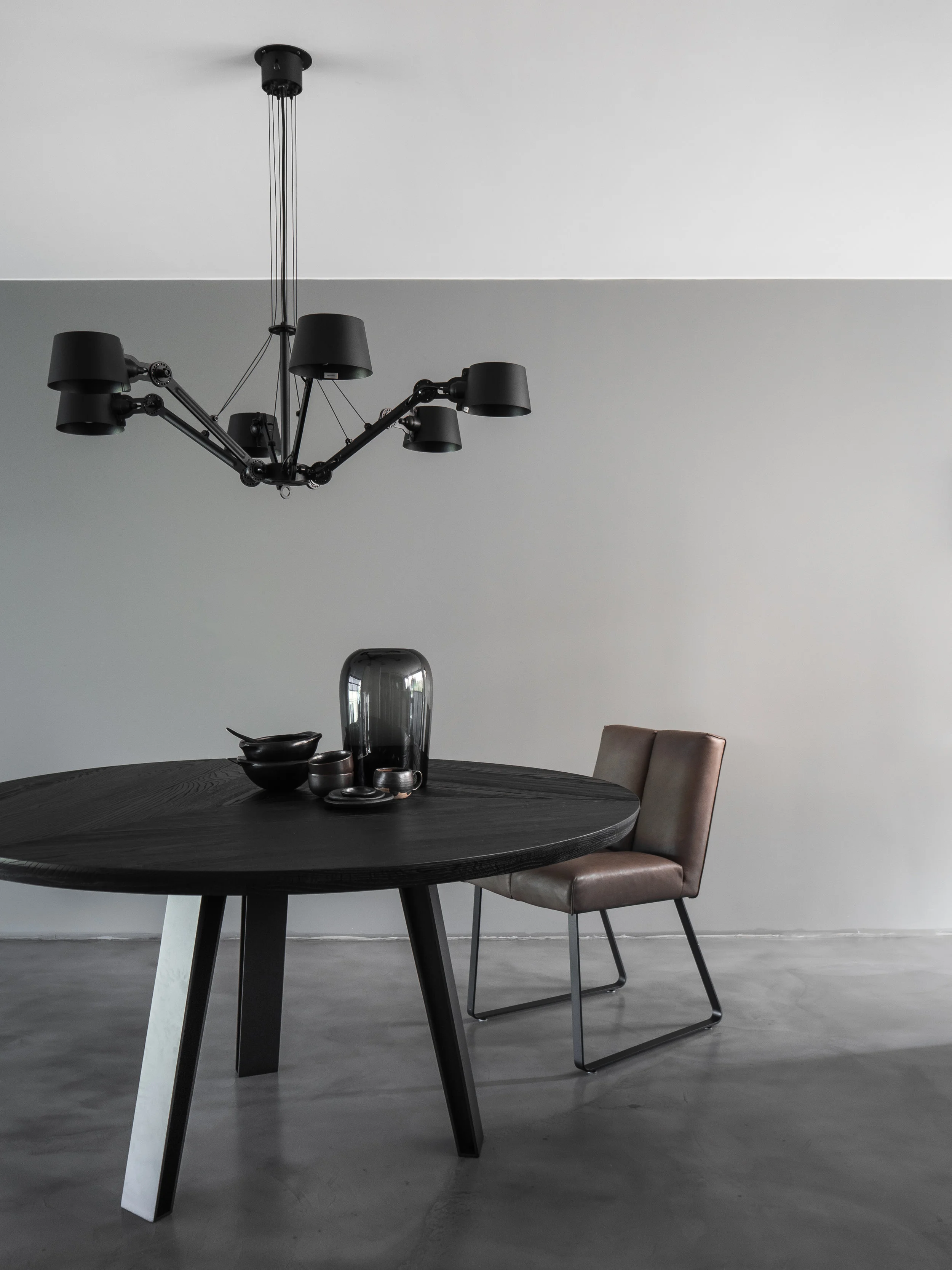 We really love their Side-to-Side round table, especially with this strong finish: the round shapes makes it soft and invites you for a warm cup of coffee, while the rough black finish makes it more masculine. A perfect combination!