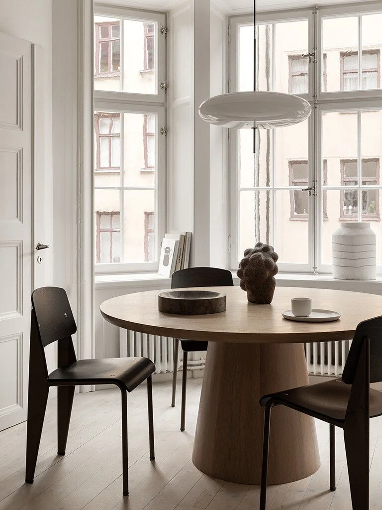It’s not always an obvious yes when I'm asked to use my own home + studio as a canvas for a photo shoot. This time around, however; when Länna Möbler, a Swedish interior store, asked me to handpick a few favorite pieces from their shop and showcase them in my home, it was an easy decision to reply yes . The pale canvas – my home that is – needed some extra warmth, so we added a few darker items, in wood and stone, both to the office and bedroom. Sculptural objects like the Flag Halyard lounger, the &Tradition side table in emparador marble, the Soft Pad chair by Eames for Vitra, the bedside table from Frederica Furniture in dark oak, and the draped curtains add to the elegant and cosy feel. - Therese Sennerholt