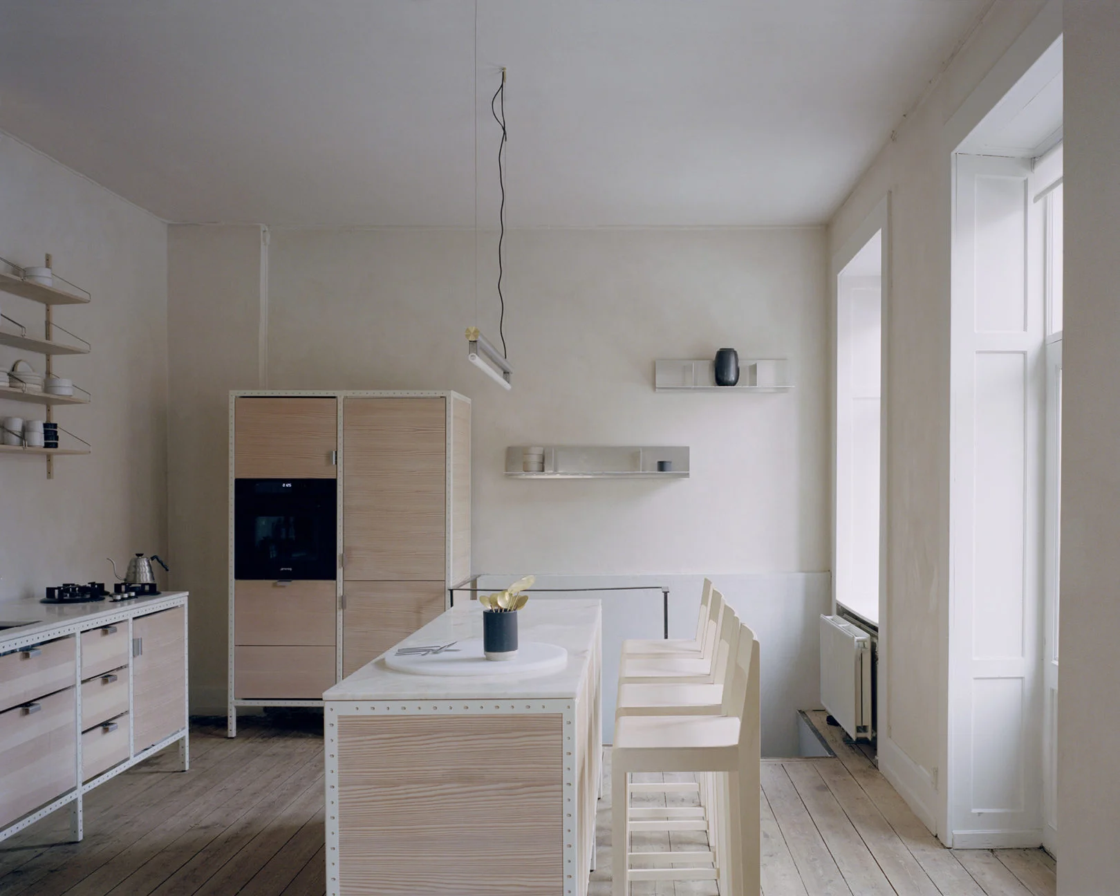 A few weeks ago I already admired some images on instagram during ‘3 days of design’ in Copenhagen, but now that I saw the beautiful serene images at Frama, I immediately thought these are too beautiful not to share as well. I just love the created serene atmosphere and it inspires me so much while re-decorating my own home. I was very attracted by the light-timber plinths topped with shallow trays of sand or gravel, beautiful simplicity that I love so much - Elvera -