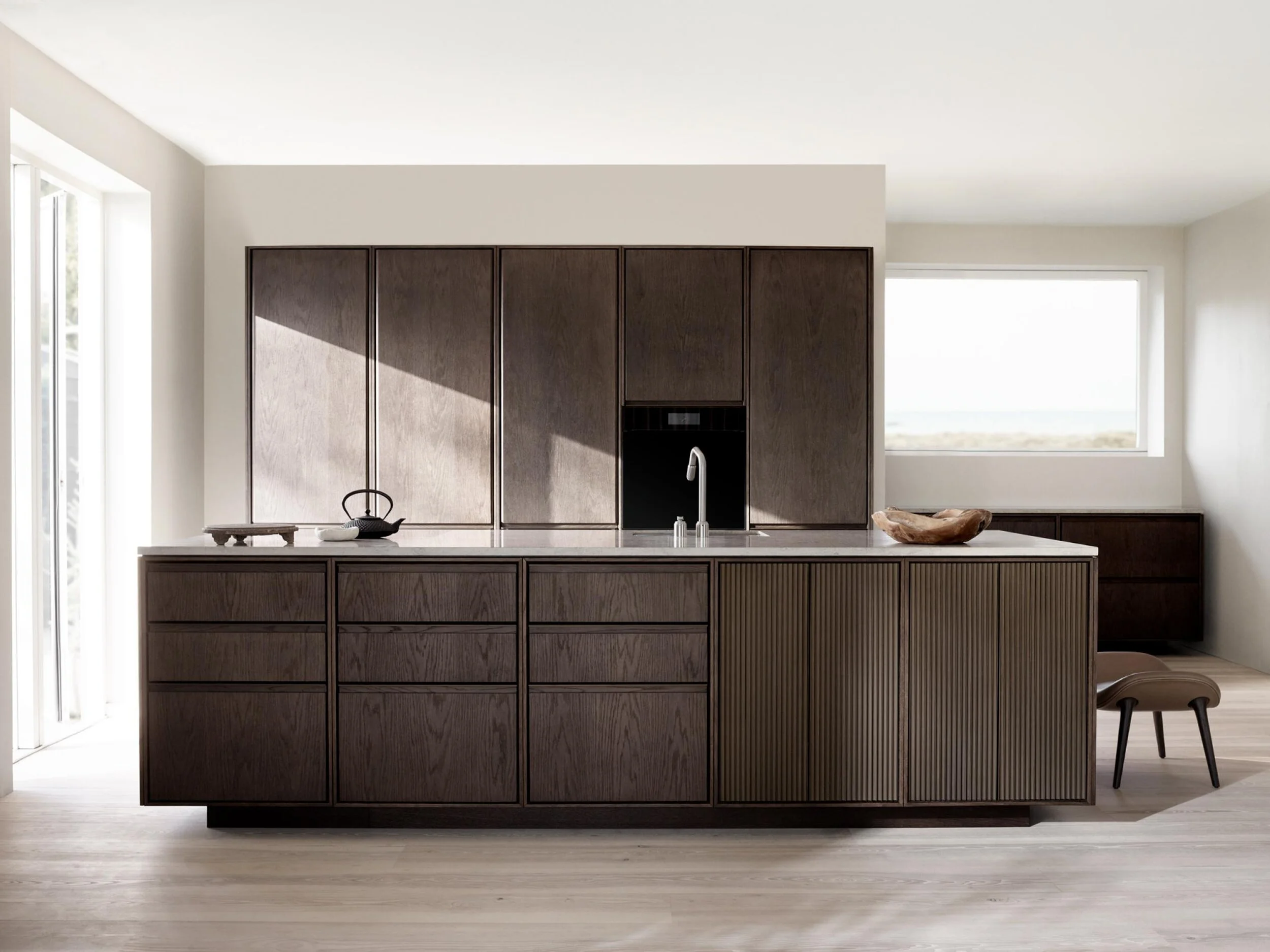 The modularity, utilities, and building-block approach, known from the V1, are reused in the V2 kitchen, comprised in four predefined modules of either tall, wall, island and island with seating extension”