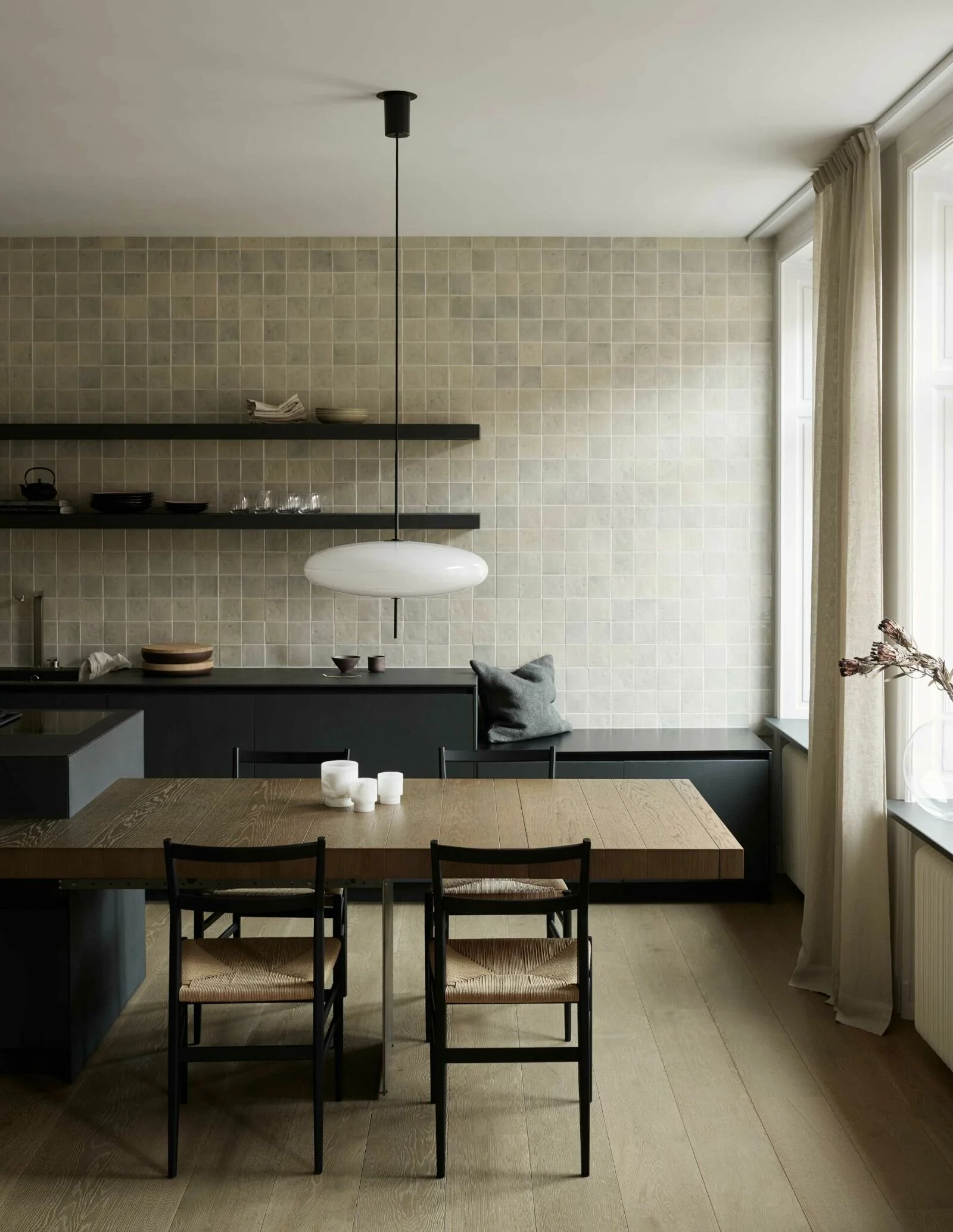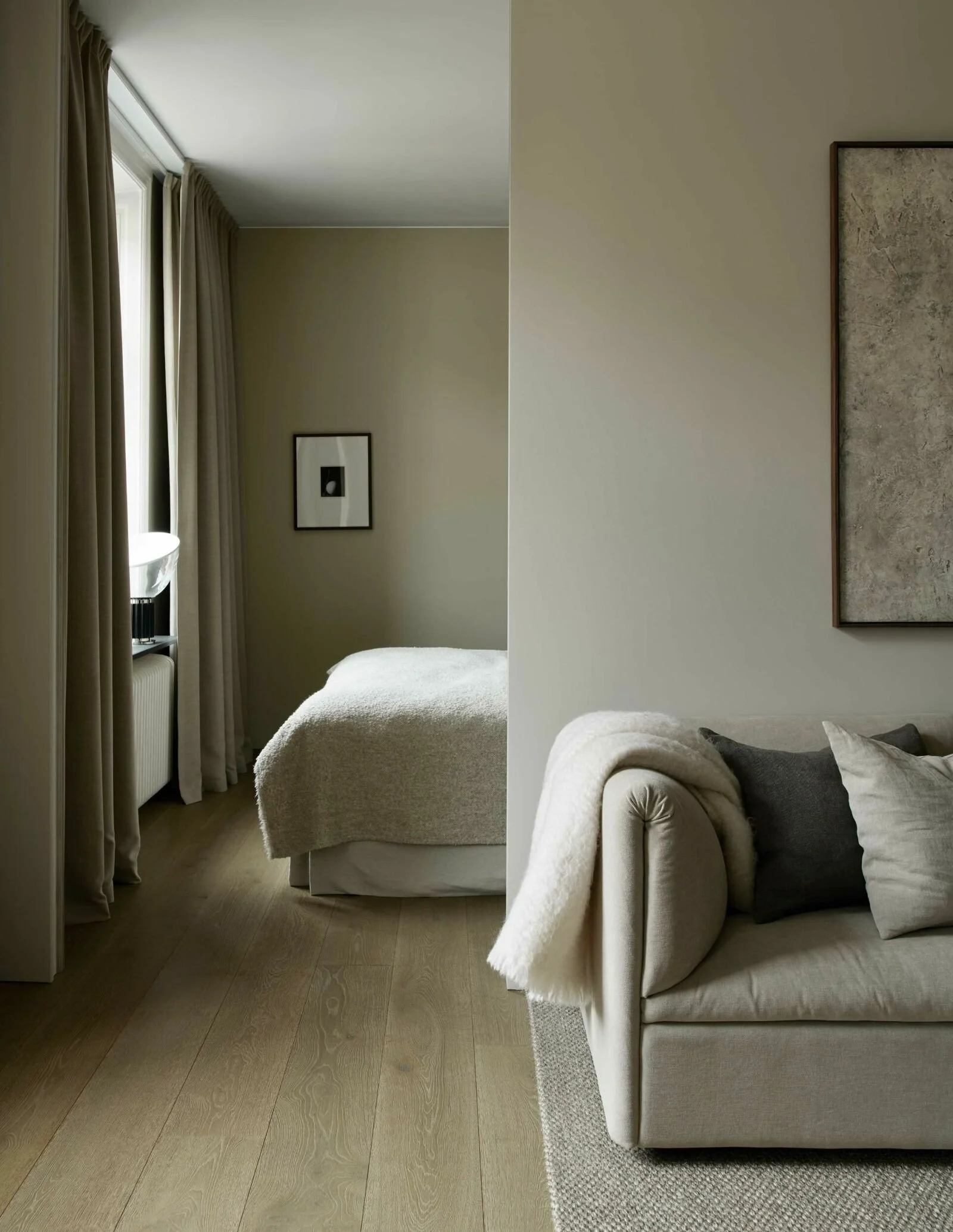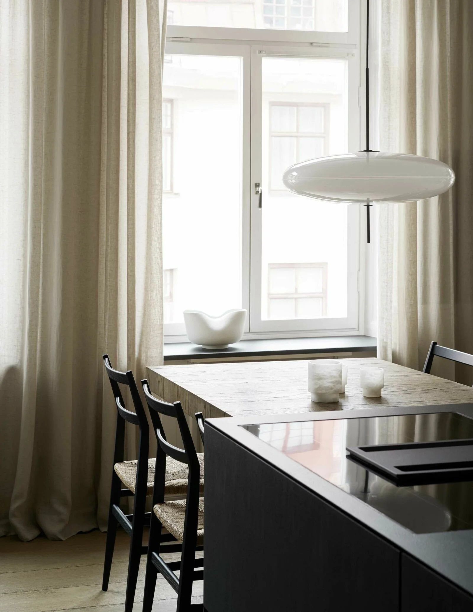 In furniture, a mix of woods returns for a natural warmth, expressive marble and a neutral carpet in sisal together with textiles in linen textures. A material palette that reappears in most of my interiors. I love to repeat a recipe that creates harmony and a pleasant feeling of home, but at the same time has a timeless, simple expression that is not dated - Pella